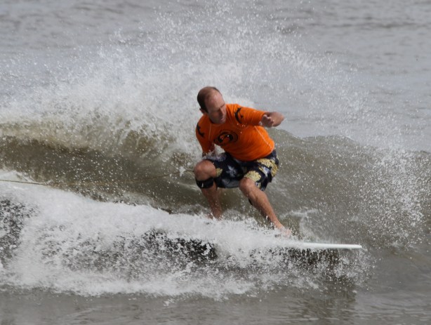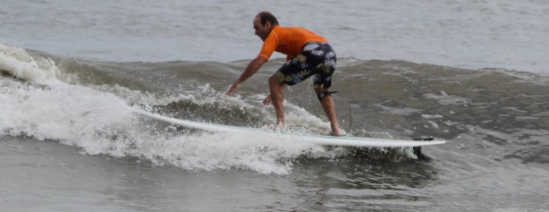 Balancing and moving to the back of the board, which is really the front of the board.