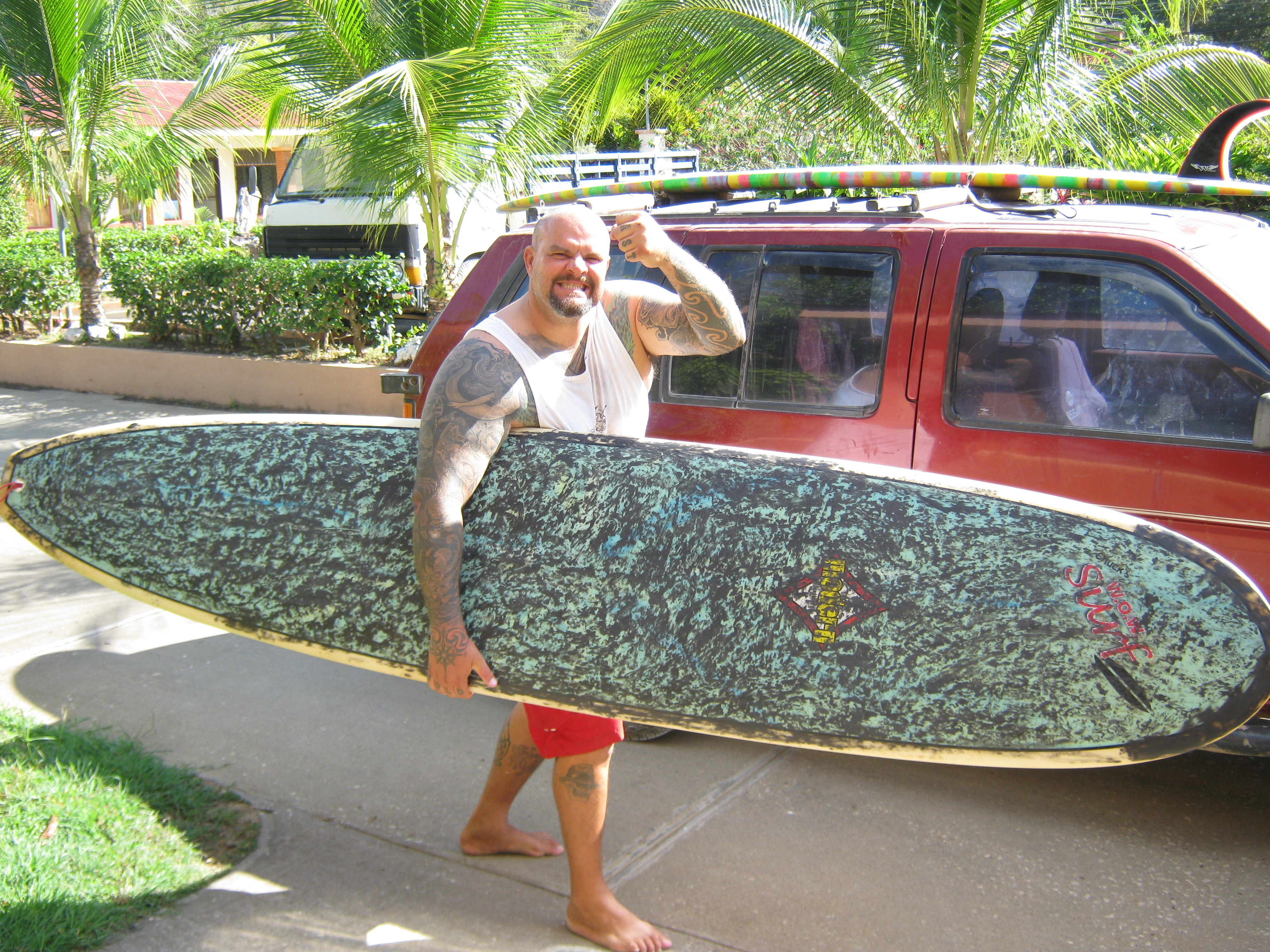 There was the 1976 Land Rover that I just had to have. It stayed broke down. At one point, I became convinced that the devil lived in the dashboard. Then there was the Yamaha dirt bike that had a rack on the side for our boards. That was tricky, because my husband and I both ride longboards. It was confiscated by the transit police, never to be seen by us again. That was followed by our beloved 1989 Toyota that we drove here from Florida. We made it last as long as we could, but it was doomed, by the “aduana”. He’s the immigration man that robbed our tax money. I’m not going to say I paid any bribes to drive that truck, but I drove it around for a few years until the police told us, “one more time, I see you in this truck and we have to take it!”. It went out to a more remote area and was eventually wrecked.