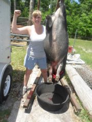 My husband’s brother, was the first to live in our little slice of nature, Camp Tobacco. When I met his wife, I was amazed. She is a bow hunter. She is a hog hunter, as the picture above exemplifies her success in this endeavor. I was impressed. Not everyone can track down a hog and kill it with a bow and arrow.